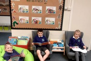 We want children to enjoy and engage with reading in a rich learning environment. Each of our EYFS and KS1 classes are read to daily at ‘storytime’ and books are often shared in other areas of the curriculum.